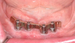 Since 1992, titanium screw implants have been inserted in edentulous sections of the upper and lower jaw in the clinic. Such dental implants serve as artificial tooth roots which, in combination with a tooth-crown-like superstructure (superstructure), enable the restoration of isolated tooth gaps with a crown, in the case of several missing teeth with a crown block, and finally in the case of an edentulous jaw with a fixed prosthesis.